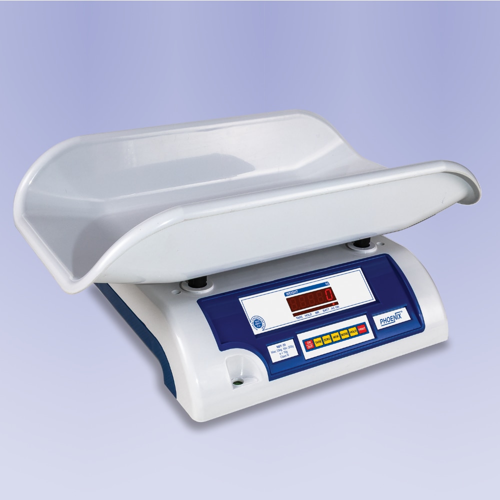 Loadcell based electronic weighing scale for infants. Baby bowl made of ABS is supplied along with the machine. High bright LED display. Works with both battery and power. Retains the last weight in memory. Indigenously developed, designed and manufactured in India.