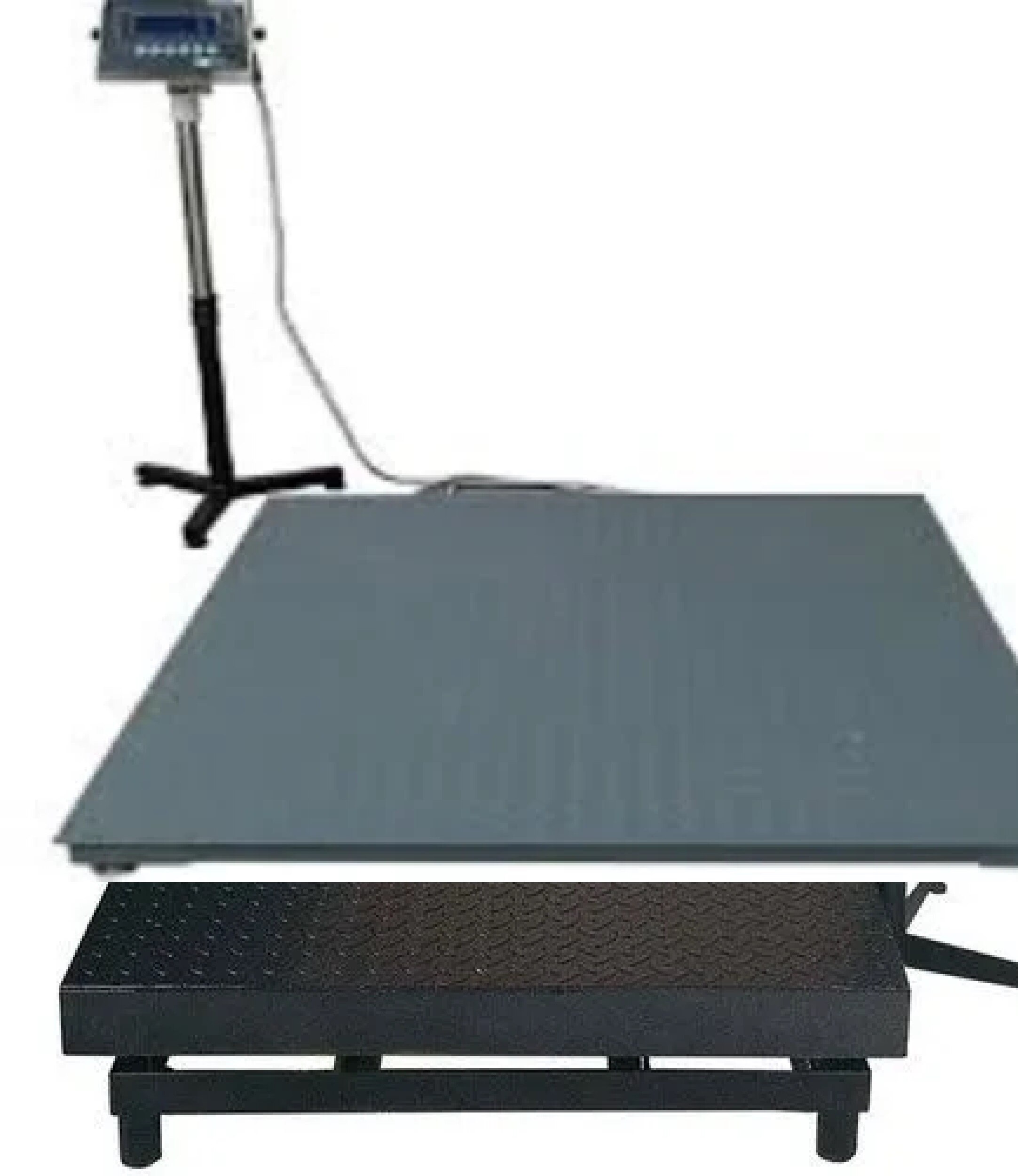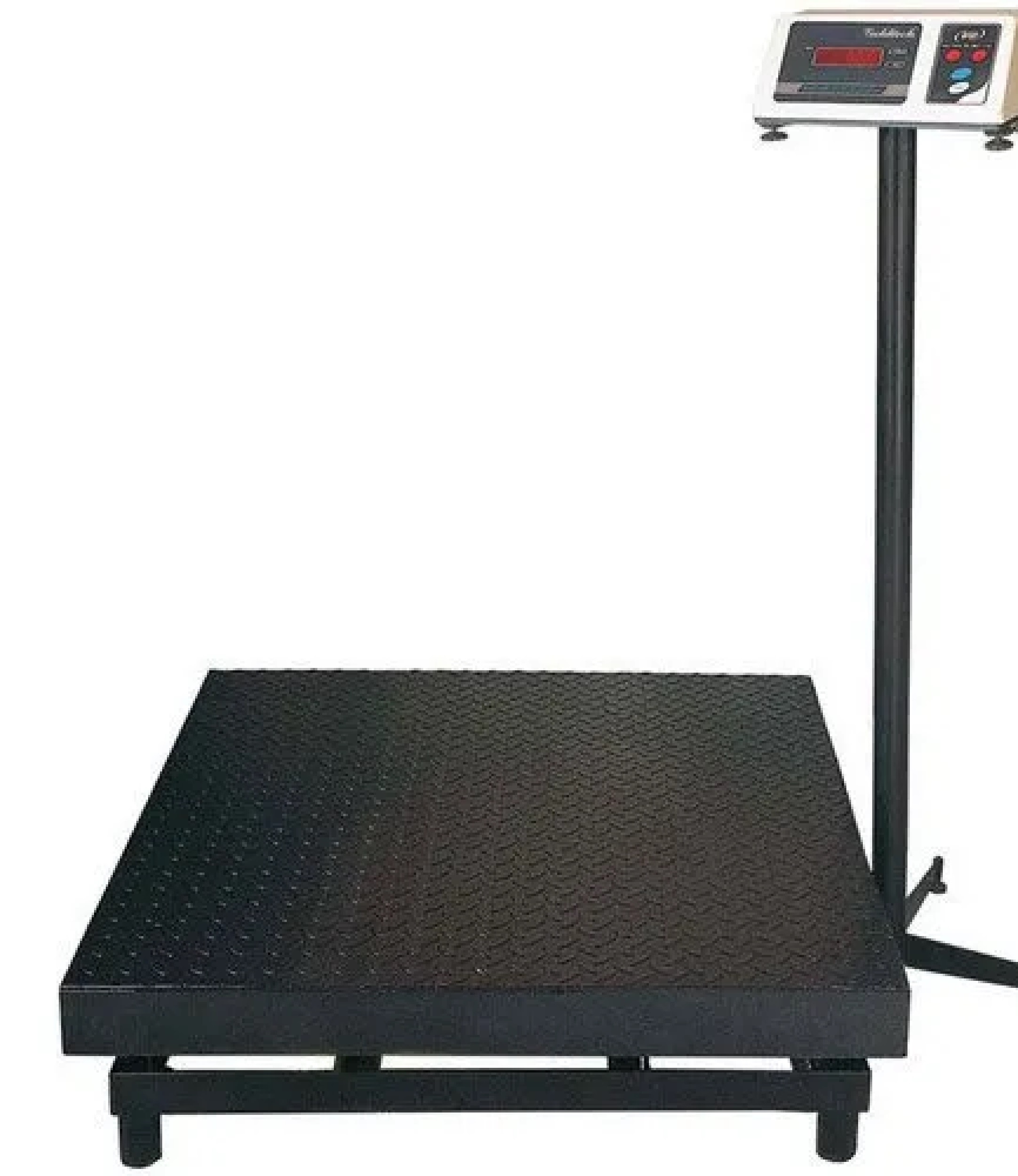 Heavy duty MS checkered pan. Maximum weighing capacity is 1000kg and accuracy is 100g. Pan size -1000x1000mm. It comes with 4 nos of 1000 nos of shearbeam loadcells. Display comes with pedestal stand. High bright LED display. Works with both power and rechargeable battery. Used in industrial segment.